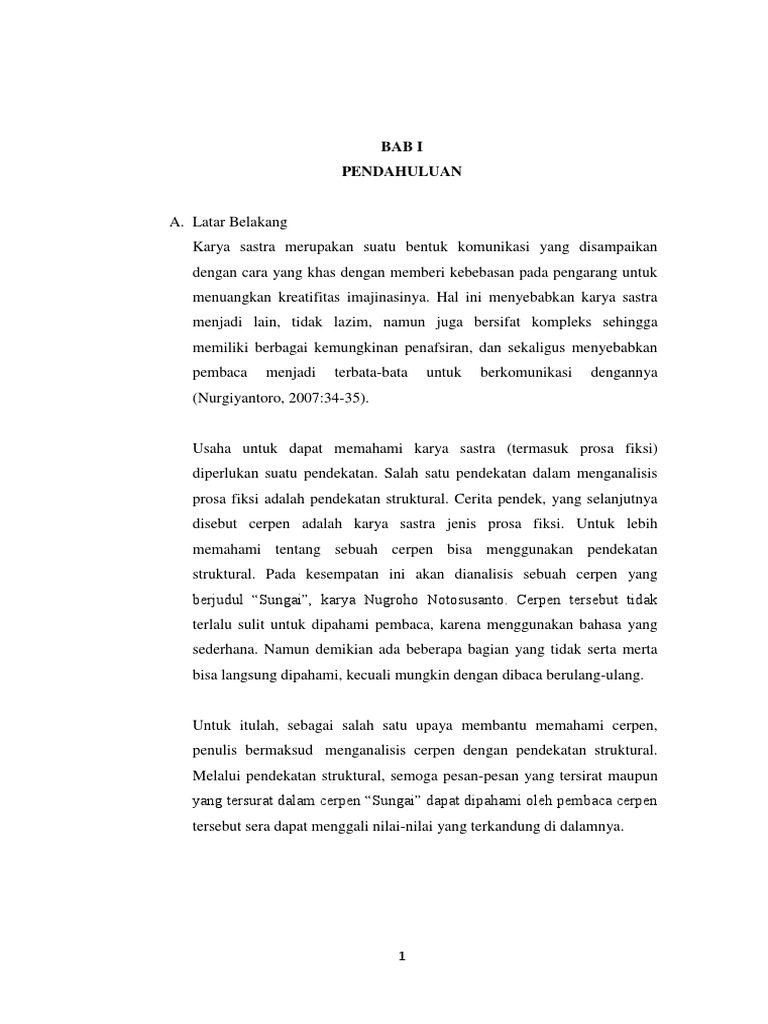 1 BAB 1 PENDAHULUAN A. Latar Belakang Cerita pendek atau yang biasa disebut dengan cerpen adalah salah satu bentuk karya sastra