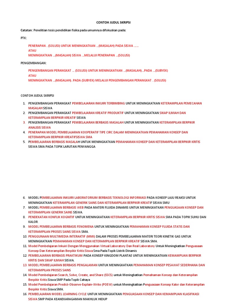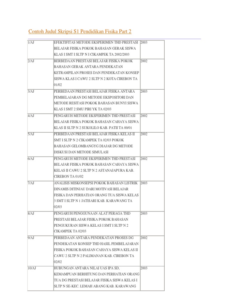 Kumpulan Judul Skripsi Pendidikan Fisika