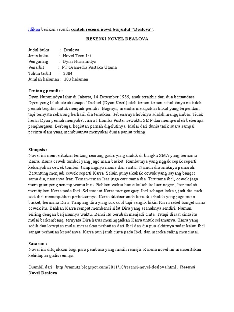 idikan berikan sebuah contoh resensi novel berjudul “Dealova”.