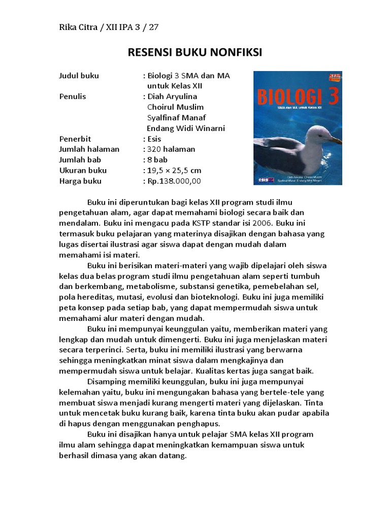 Resensi Buku Nonfiksi esis biologi kelas 3 sma