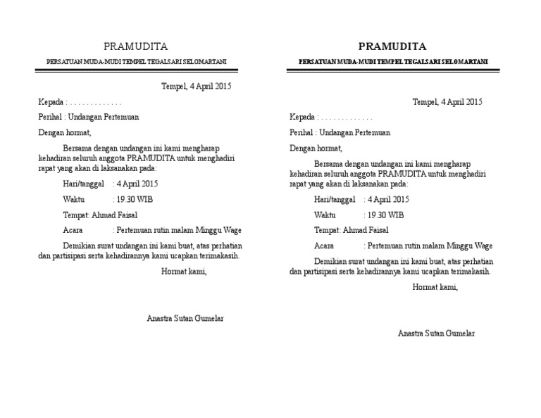 Contoh Surat Undangan Rapat Muda Mudi