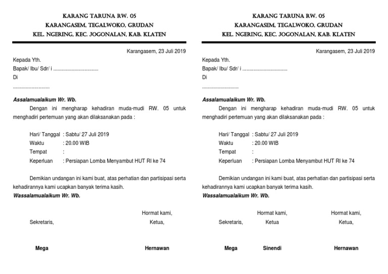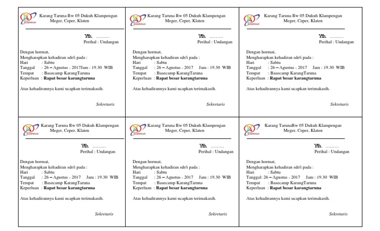 Contoh Surat Undangan Rapat Karang Taruna Desa Acara 17 Agustus