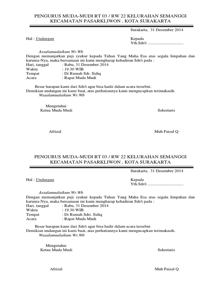 Contoh surat undangan mudamudi