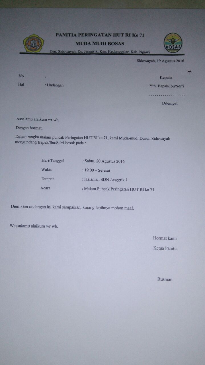 Bosas Sidowayah Twitter: “Undangan yg akan dibagikan ke seluruh warga RW 01 untuk meramaikan acara panggung gembira 17an. #KarangTaruna #Bosas… "