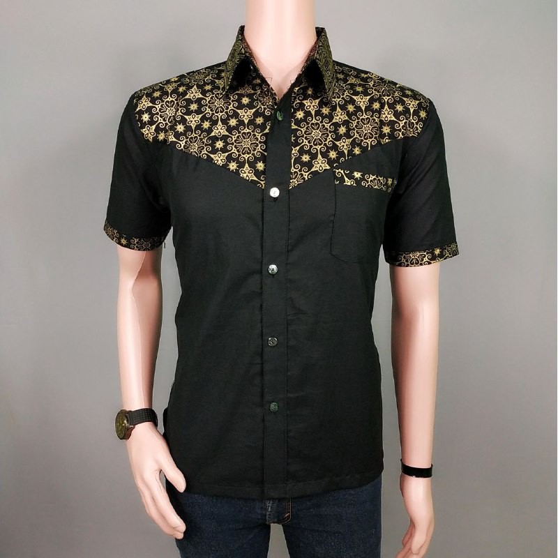 Jual Kemeja Batik Kombinasi - Batik Pria Emas Prada Lengan Pendek - Perak - Kab. Pekalongan - 159batik | Tokopedia