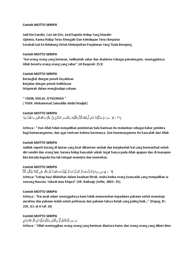 DOC) Kumpulan Contoh Kata Motto Skripsi Posted by Administrator Friday | Vina Hadriani Adnan - Academia.edu