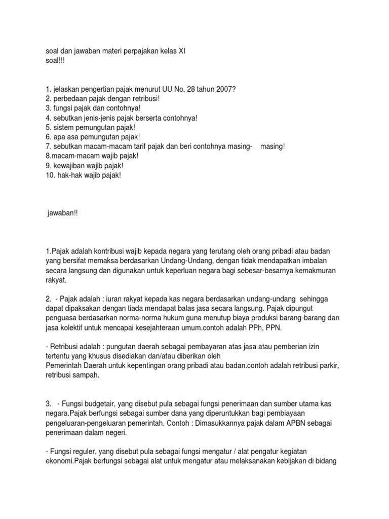 Contoh Soal Dan Jawaban Materi Perpajakan - Guru Ilmu Sosial