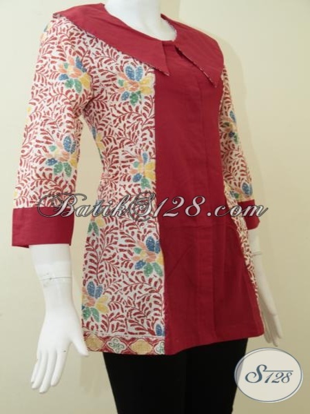 Atasan Batik Wanita Kekinian, Blouse Batik Solo Modis Kombinasi Kain Polos Toyobo Merah Kwalitas Istimewa, Baju Batik Cewek Lengan 7/8 Bikin Penampilan Cantik Dan Modis [BLS9311C-L] - Toko Batik Online 2021