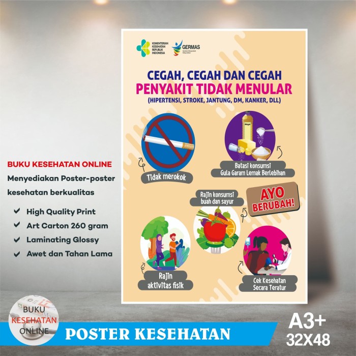Jual Poster Kesehatan CEGAH PENYAKIT TIDAK MENULAR - LAMINATING GLOSSY - Kota Bogor - Buku Kesehatan Online | Tokopedia