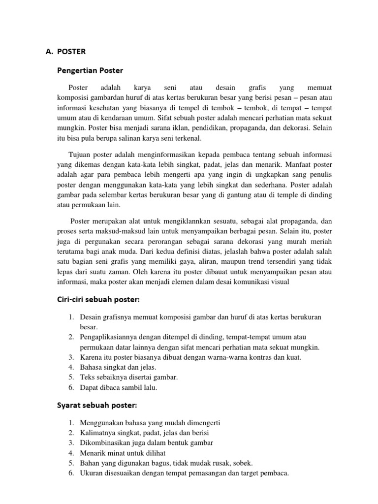 Pengertian Poster, Ciri, Syarat, Tujuan dan