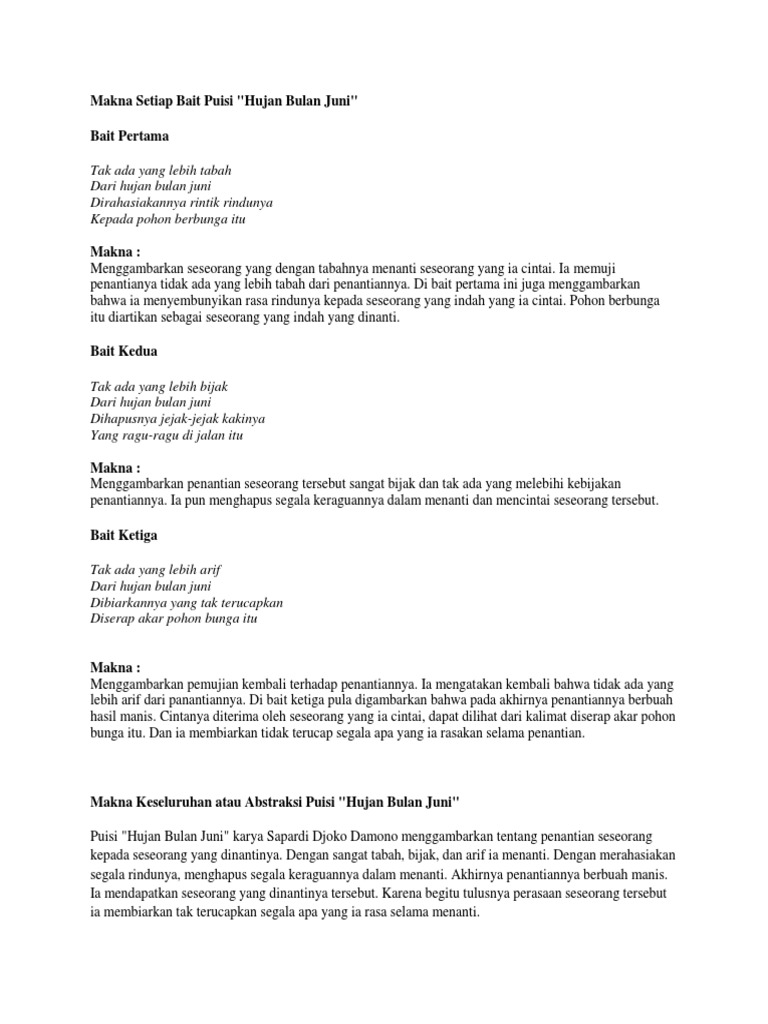 jelaskan isi atau maksud puisi “hujan bulan juni” secara lebih rinci - Brainly.co.id