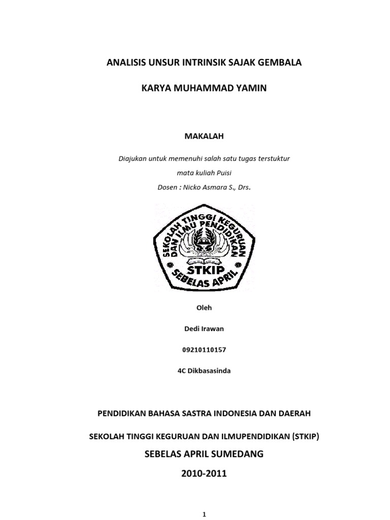 DOC) Analisis unsur fisik dan batin pada puisi | mika sirait - Academia.edu
