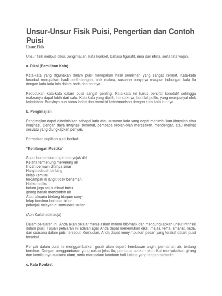 Sebutkan Unsur-unsur Puisi? [Intrinsik, Ekstrinsik, Fisik, Batin]