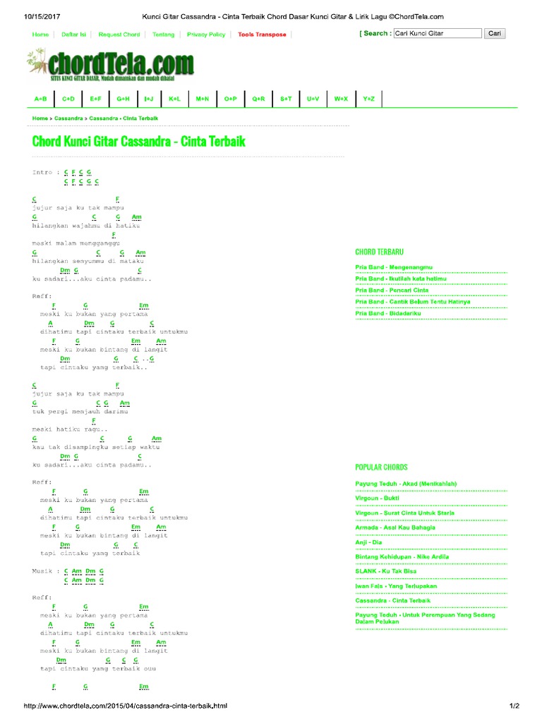 Kunci Gitar Cassandra - Cinta Terbaik C…unci Gitar & Lirik Lagu ©ChordTela .pdf