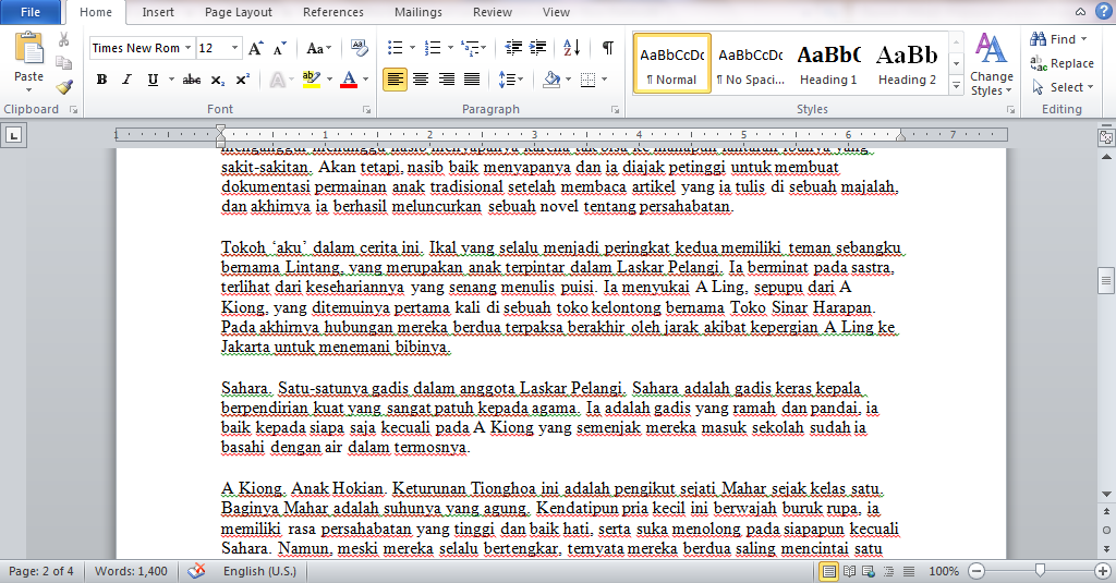 RESENSI Novel Laskar Pelangi