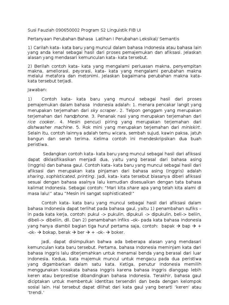 DOC) Pengertian dan Contoh Leksem Perubahan Makna | Raden Gita - Academia.edu
