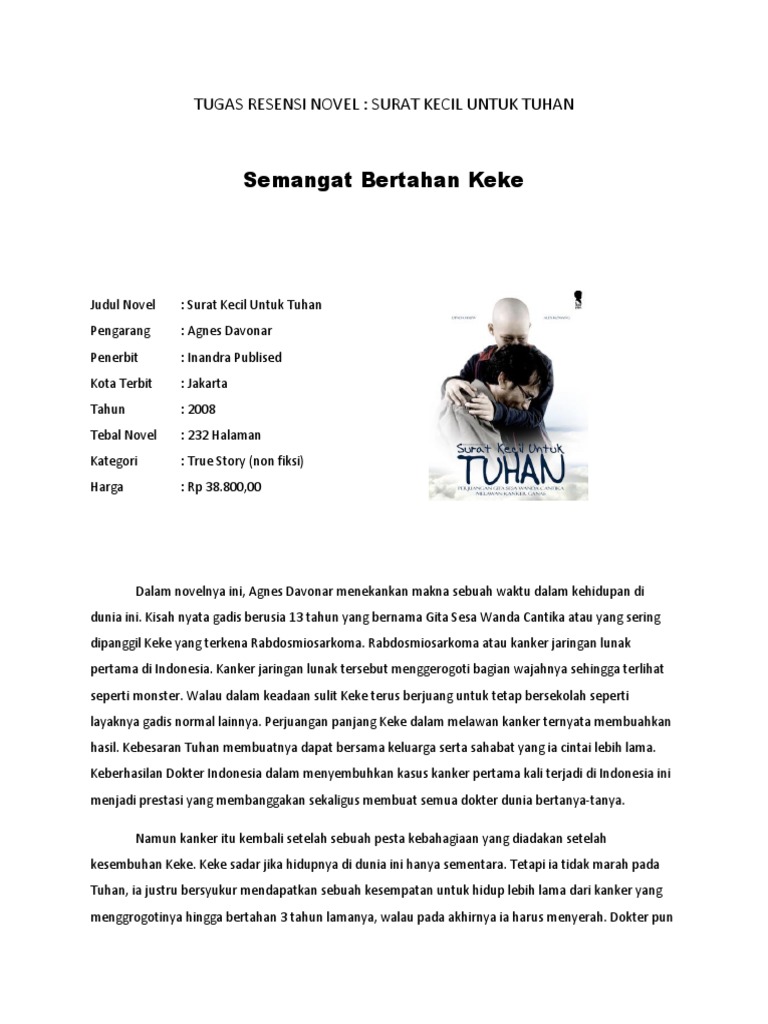 Contoh Resensi Novel Surat Kecil Untuk Tuhan - Berbagi Contoh Surat