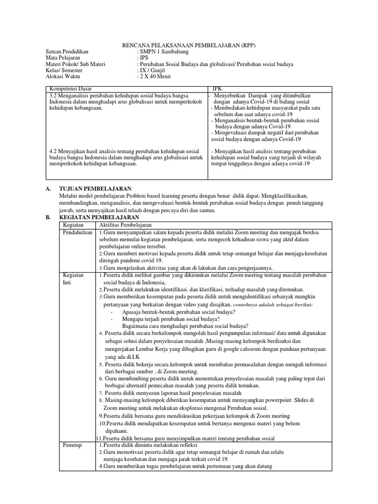 RPP Perubahan sosial budaya dan globa