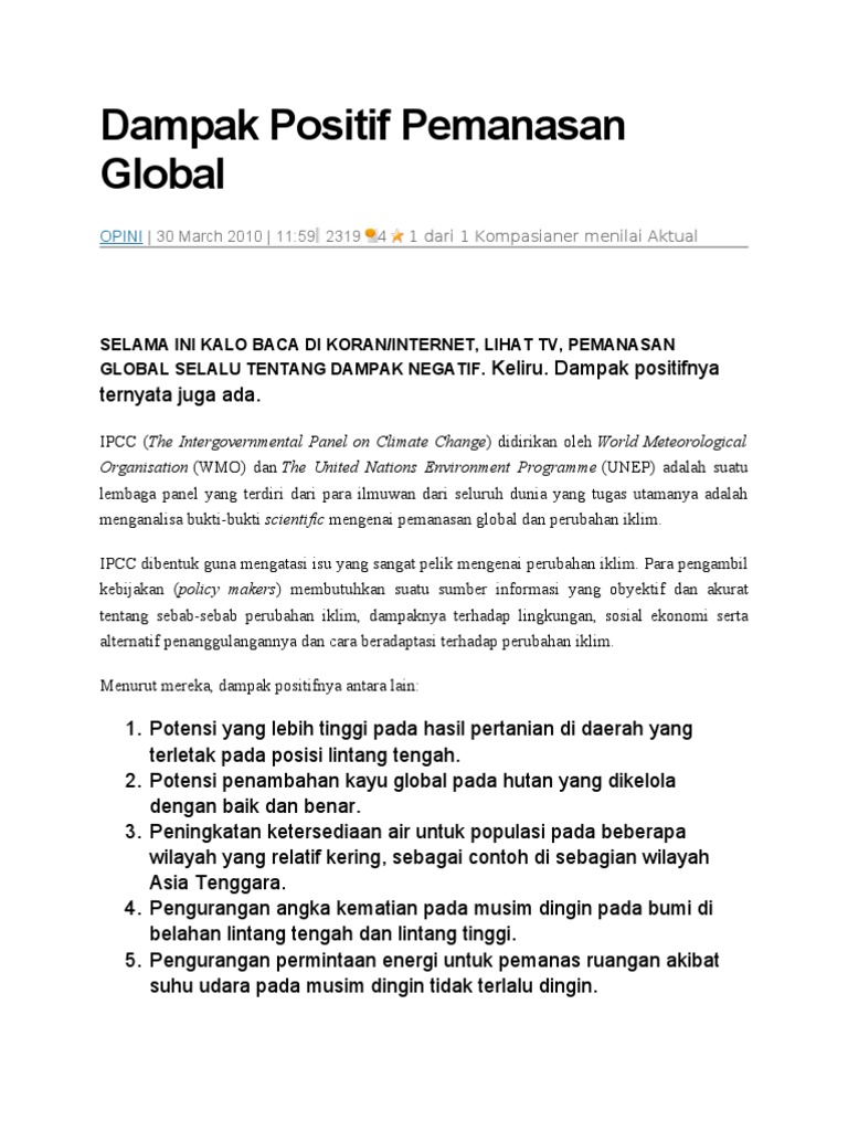 Dampak Positif Pemanasan Global: | 30 March 2010 | 11:59 2319 4 1 dari 1 Kompasianer menilai Aktual