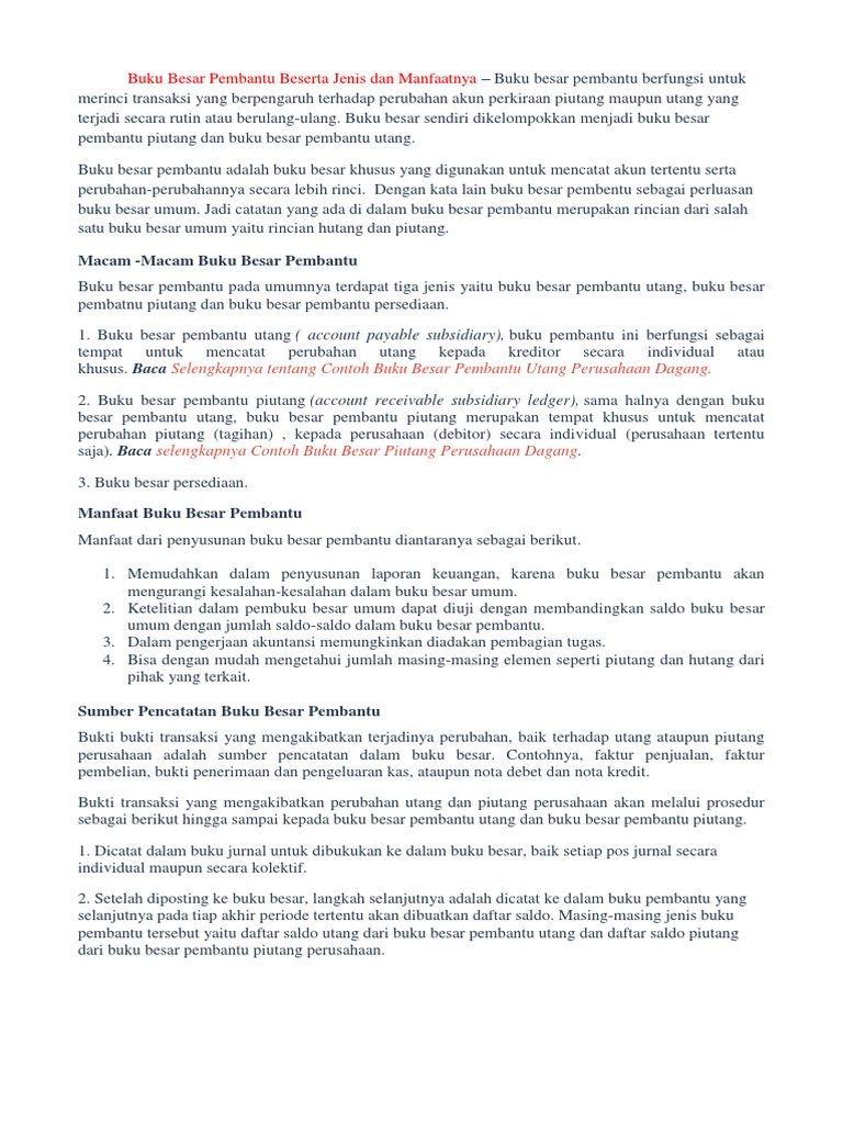 Buku Besar Pembantu Beserta Jenis Dan Manfaatnya