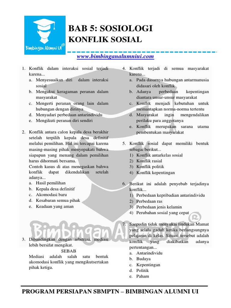5 Contoh Soal Konflik Sosial & Pembahasannya Biar Lulus SBMPTN 2018!