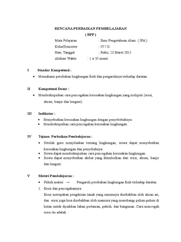 Rpp Ipa Kelas IV Semester 2 Kd 10