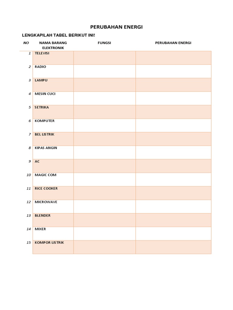 tolong jelaskan perubahan energi listrik pada setiap benda tersebut !tolong pakai nama benda nya - Brainly.co.id