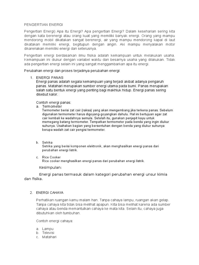 Pengertian Energi Dan Contoh Perubahan Energi - Cilacap Klik