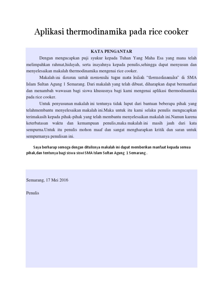 PDF) PENERAPAN HUKUM TERMODINAMIKA PADA RICE COOKER | femilia aida …