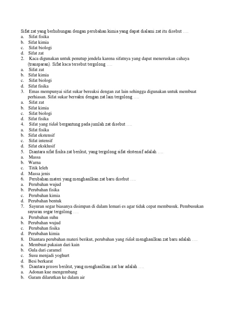 Contoh Soal Perubahan Fisika Dan Kimia Kelas 7 - Bagikan Contoh