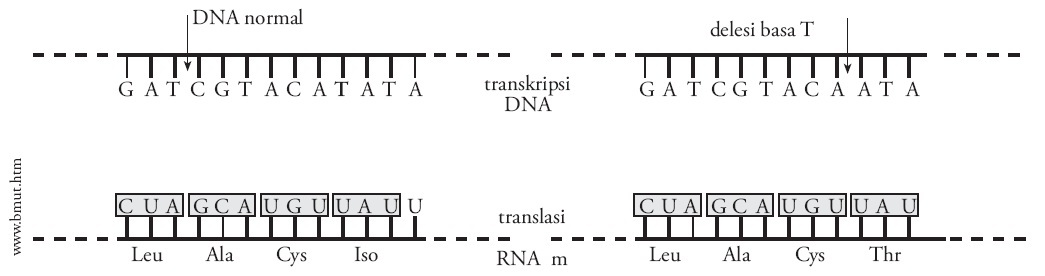 Mutasi pergeseran kerangka disebabkan oleh - Brainly.co.id