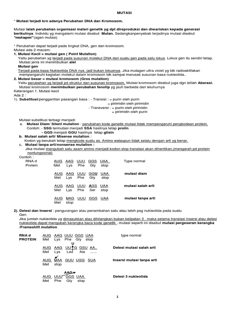 Materi Ringkas Mutasi - Biologi SMA / SMK - Detail Catatan | MejaKita