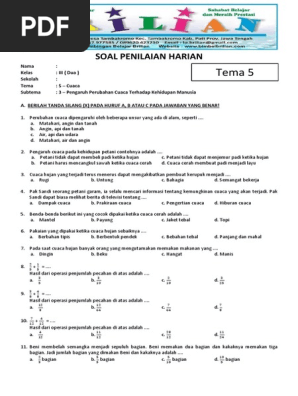 Soal Tematik Kelas 3 Sd Tema 5 Subtema 3 Pengaruh Perubahan Cuaca Terhadap Kehidupan Manusia - ProProfs Quiz