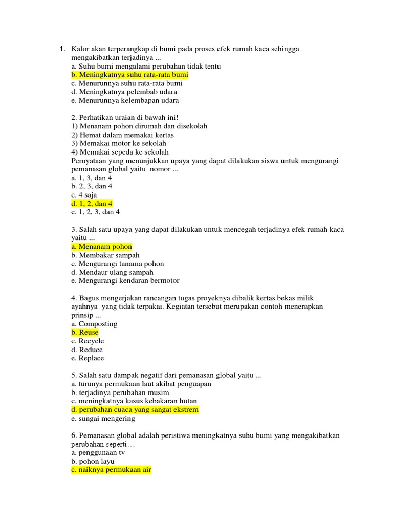 40 Soal Pilihan Ganda Pemanasan Global dan Jawabannya - Muttaqin id