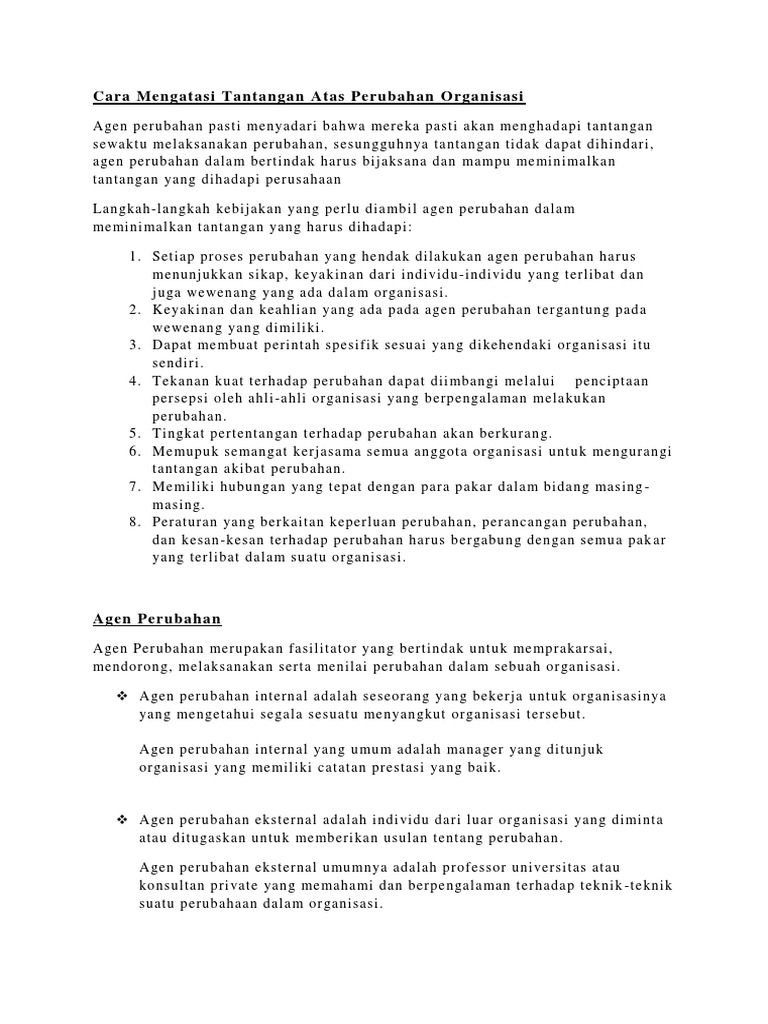 Cara Mengatasi Tantangan Atas Perubahan Organisasi Dan Agen Perubahan No 4