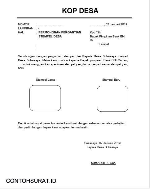 Contoh Surat Pergantian Stempel Desa, Kantor, Bank - Contoh Surat