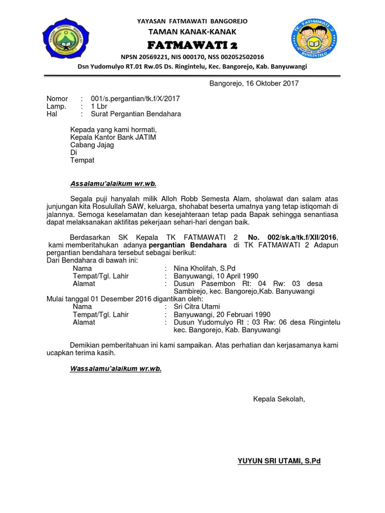 Contoh Sk Pergantian Bendahara Bos Sd - Guru Ilmu Sosial
