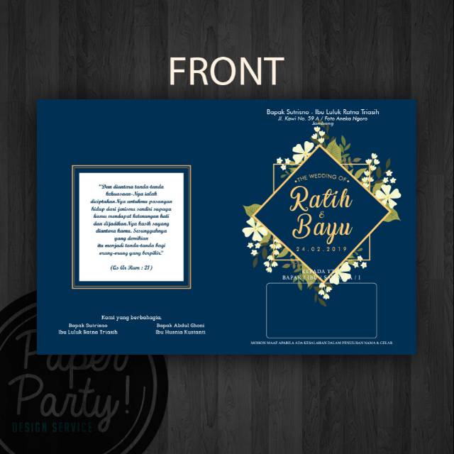 Undangan Lala Fuad : dengan full blue navy Poin Undangan adalah jasa pembuat kartu undangan pernikahan, khitanan harga terjangkau beragam model hard cover, soft cover, kardus nasi, box roti, box sepatu, paper