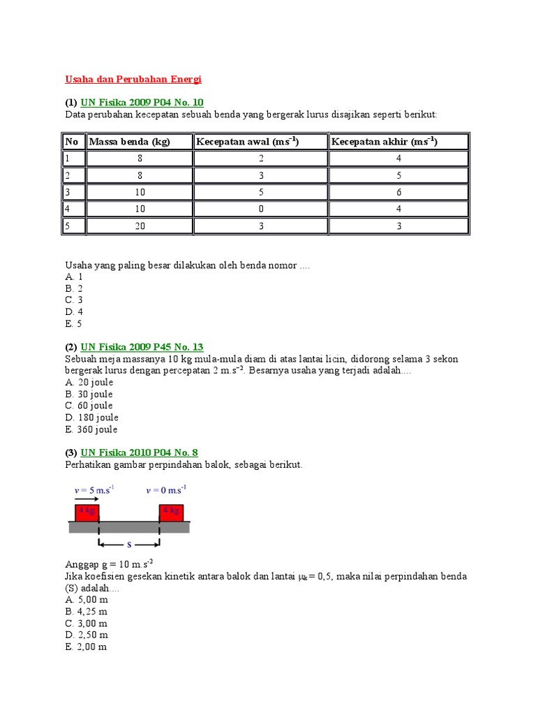 Soal Latihan Materi Usaha, Bentuk Energi, Perubahan Energi …