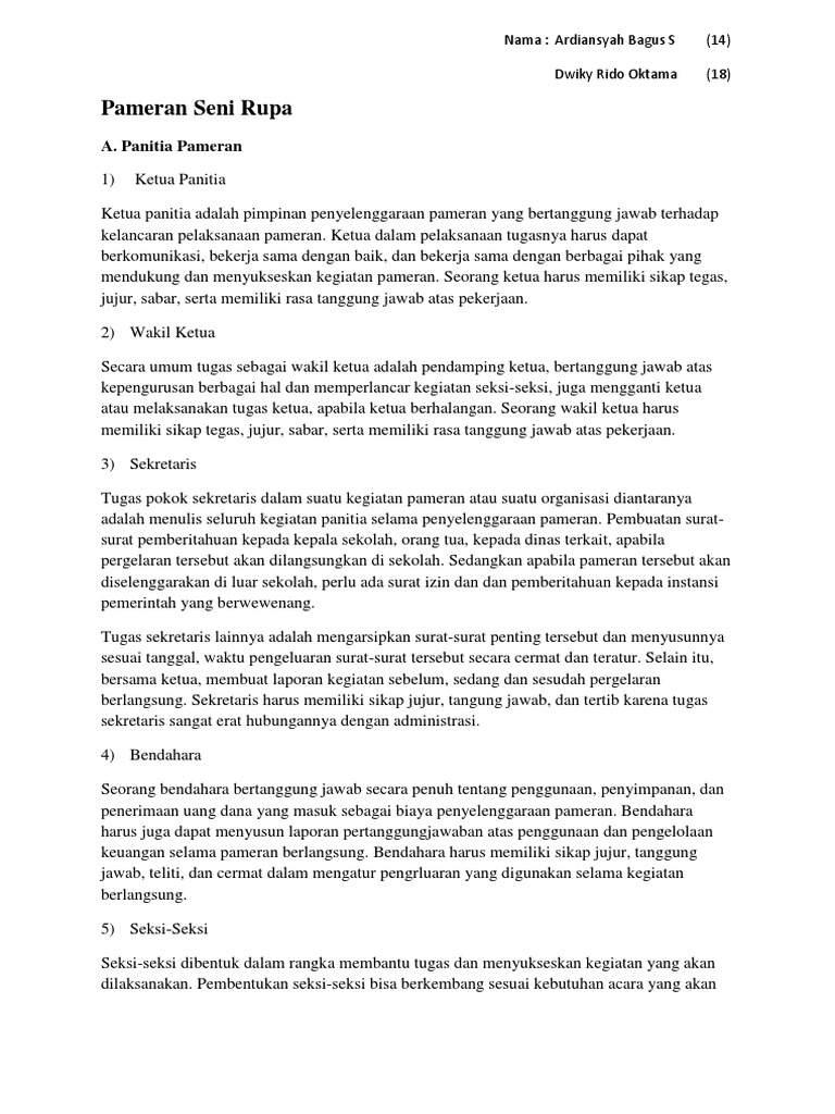 DOC) CONTOH PROPOSAL KEGIATAN PAMERAN SENI RUPA DI SEKOLAH.docx | Zakaria Ahmad - Academia.edu