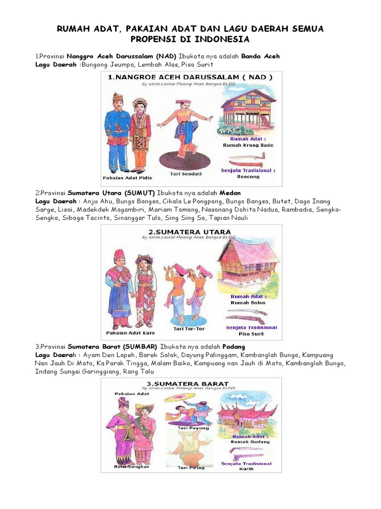 DOC) 34 provinsi di indonesia lengkap, rumah adat, pakaian adat, tari, senjata tradisional.docx | Teja Sukmana - Academia.edu