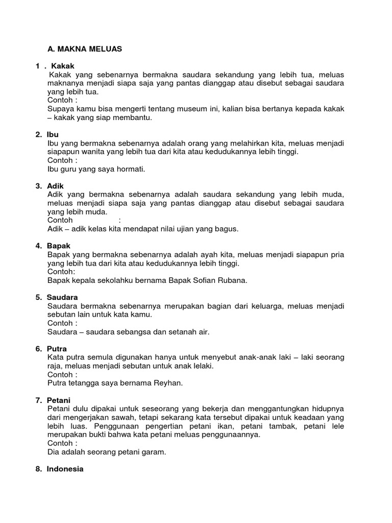 Pergeseran Makna: Contoh Perluasan Makna & Penyempitan Makan, Peyorasi, Ameliorasi dan Sinestesia - Berpendidikan.Com