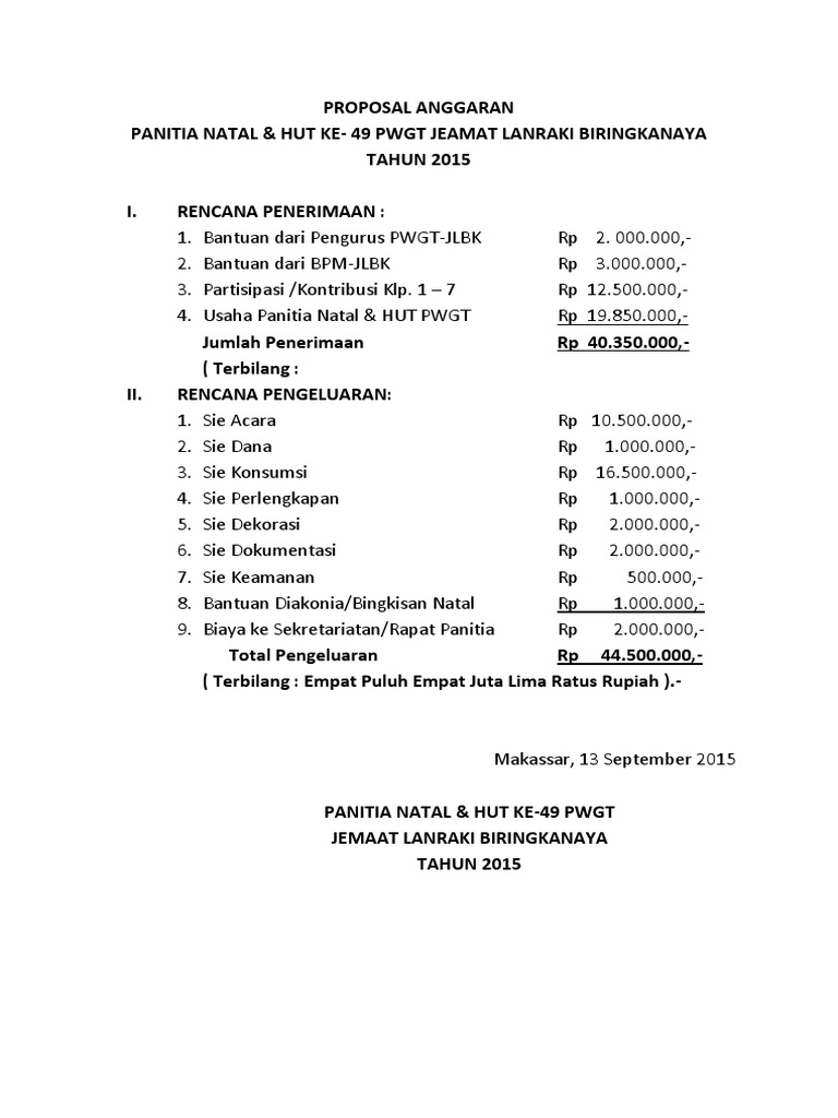 Contoh Proposal Natal 2019 Lengkap Dengan Rincian Biayanya - Nekopencil