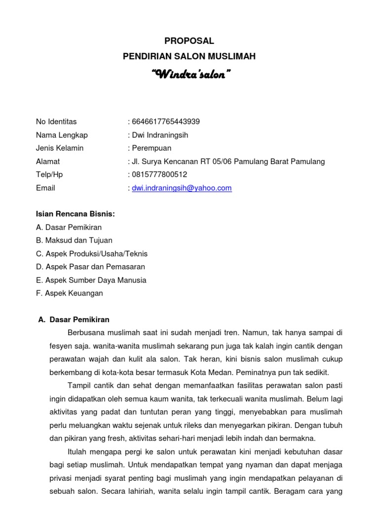 Contoh Proposal Usaha Salon Kecantikan Pdf - Berbagi Contoh Proposal