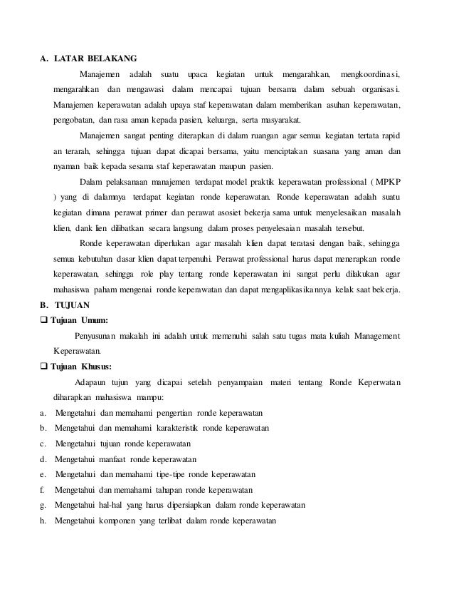 DOC) MAKALAH ROLE PLAY RONDE KEPERAWATAN MATA AJAR MANAJEMEN KEPERAWATAN | Saskia Widutami - Academia.edu