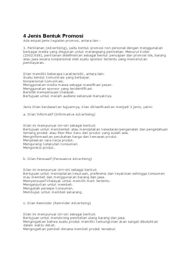 4 Jenis Bentuk Promosi