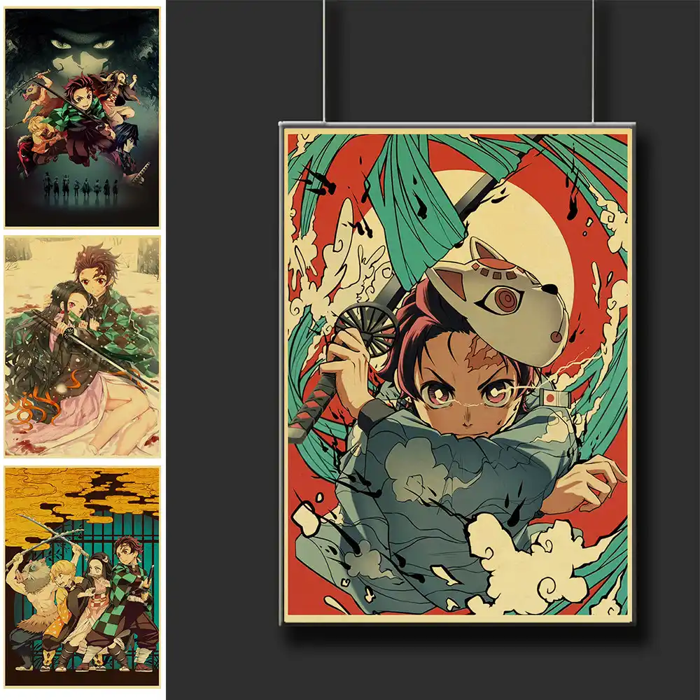 Vintage Demon Slayer Kimetsu no Yaiba Posters Home Decor Wall Stickers Retro Paper Anime Posters Bedroom Decor|Painting & Calligraphy| - AliExpress