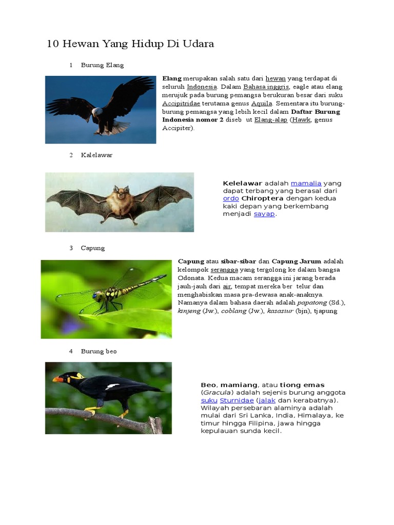 10 Hewan yang Hidup di Udara dan Penjelasannya - Matakaca.com