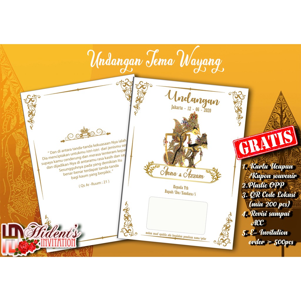 UNDANGAN PERNIKAHAN SIMPLE, UNDANGAN UNIK WAYANG | Shopee Indonesia
