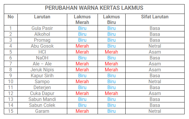 kertas lakmus merah dan lakmus biru dicelupkan ke dalam beberapa larutan. perubahan warna yang - Brainly.co.id